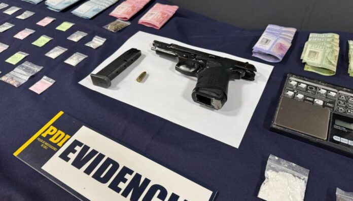 Además, los detenidos poseían una pistola de fogueo, munición y utensilios para la dosificación de sustancias reguladas por la Ley 20.000.