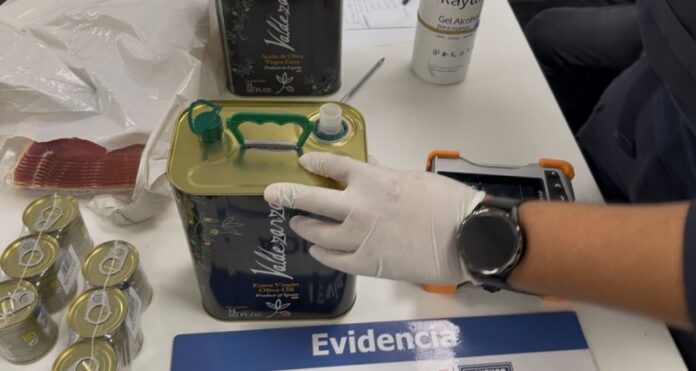 En otro procedimiento, se detuvo a un ciudadano español de 24 años que intentó ingresar a Chile con más de 6 litros de éxtasis líquido. La droga estaba camuflada dentro de dos latas de aceite de oliva en su maleta, y fue detectada por los perros de Aduanas en la zona de pasajeros internacionales.