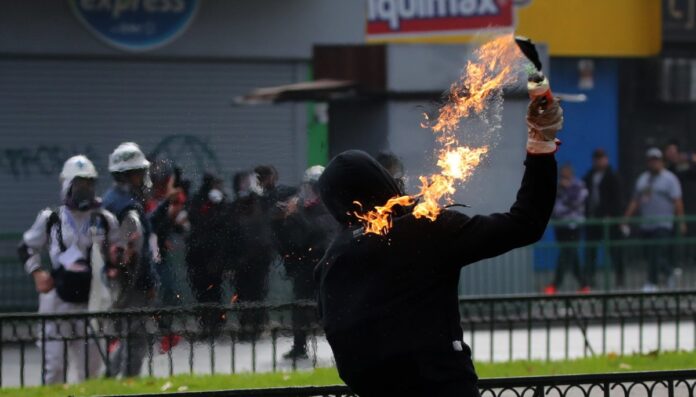 Los incidentes, según informaron, incluyeron el uso de fuegos artificiales, artefactos incendiarios y objetos contundentes lanzados hacia Carabineros, además de la quema de un automóvil particular y daños en la infraestructura urbana, como señalética pública.