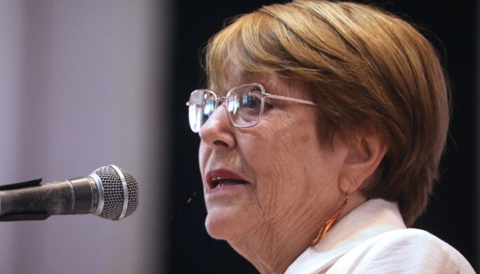 Michelle Bachelet expresó su preocupación por la situación social en Chile durante un conversatorio en la Universidad de Las Américas el 29 de abril.
