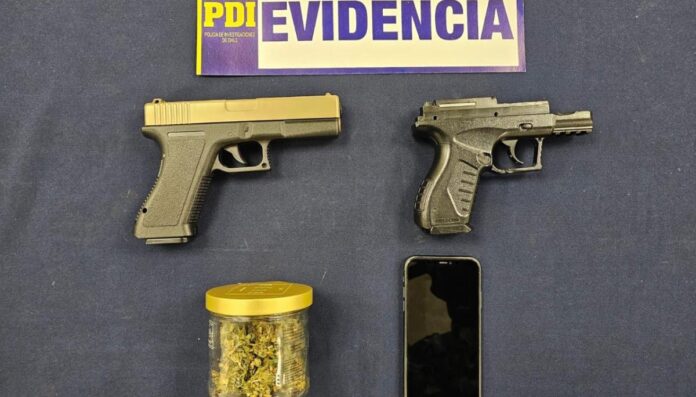 Durante las inspecciones, se encontró una pistola de airsoft, una pistola de aire comprimido, y 10 gramos de marihuana. El adulto fue arrestado por violar la Ley 20.000 sobre drogas.
