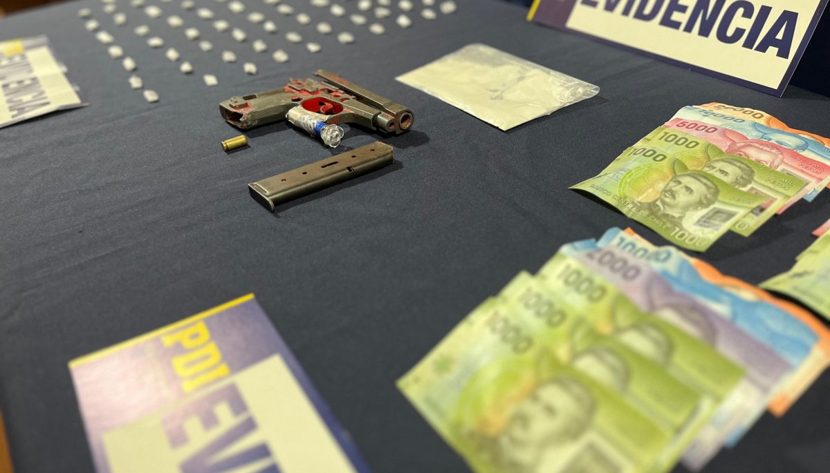 La subprefecto Marjorie Álvarez, de la Brigada de Investigación Criminal de Coronel, detalló que en el lugar se incautaron 18,95 gramos brutos de cocaína base, lo que equivale a 285 dosis distribuidas en 48 envoltorios. También se confiscó un arma de fogueo con su cargador y siete municiones, así como $133.000 en efectivo.
