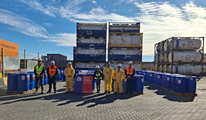 En una acción liderada por el Servicio Nacional de Aduanas en el Puerto San Vicente, en la Región del Biobío, se incautaron 40 toneladas de ácido clorhídrico, un cargamento que llegó en 160 tambores.