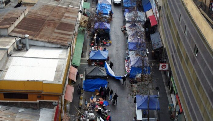 Carabineros y guardias municipales eliminaron los toldos azules en las calles Meiggs, Campbell y Garland, en medio de las protestas de los comerciantes.