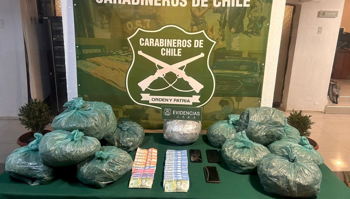 A raíz de esto, se llevó a cabo la detención de dos ciudadanos chilenos que transportaban 14 kilos 400 gramos de marihuana elaborada.