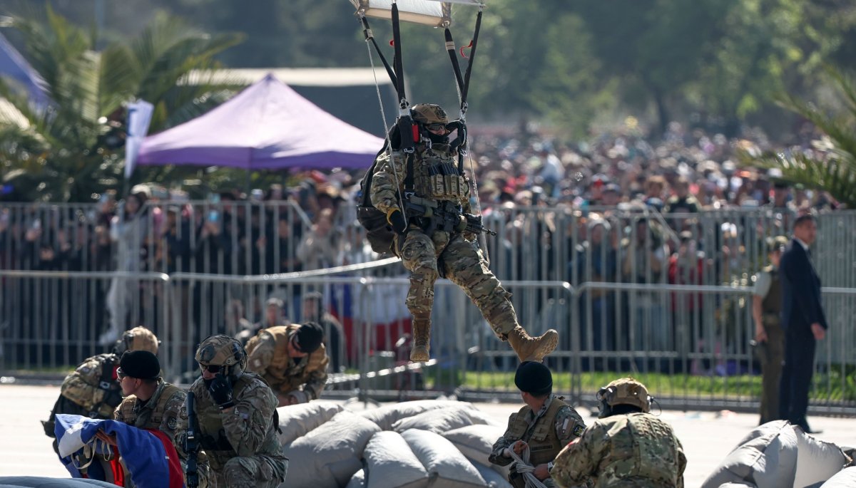 La Parada Militar 2025 comenzó con impresionantes saltos en paracaídas por parte de los comandos del Ejército. Los boinas negras realizaron su descenso desde aproximadamente 3,500 metros y aterrizaron con precisión en la elipse del Parque O’Higgins, ante la presencia del Presidente Gabriel Boric y otras autoridades.