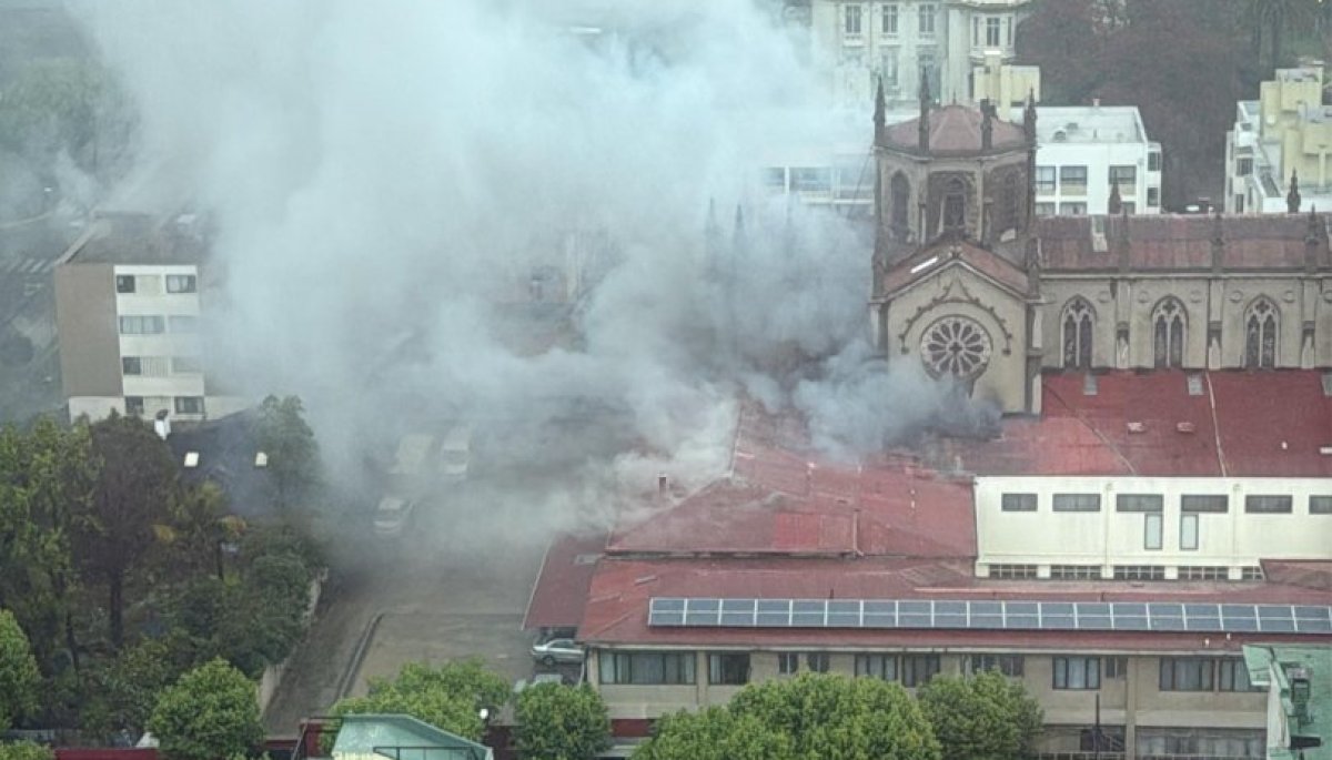 Un incendio devastador está afectando, durante la mañana de este sábado, a la Iglesia Las Carmelitas en Viña del Mar, situada en 5 Norte con Avenida Libertad.