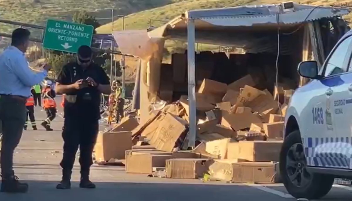 El incidente ocurrió el martes por la tarde en el sector de Huertos Familiares, cuando el camión se desplazaba de norte a sur y, por razones que se están investigando, perdió el control, cruzó el eje central, colisionó con una señal de tráfico y volcó.