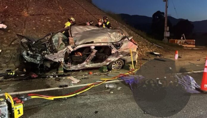 Los primeros respondientes confirmaron que había cuatro personas implicadas en el accidente, de las cuales una fue eyectada del auto y otra quedó atrapada en su interior.