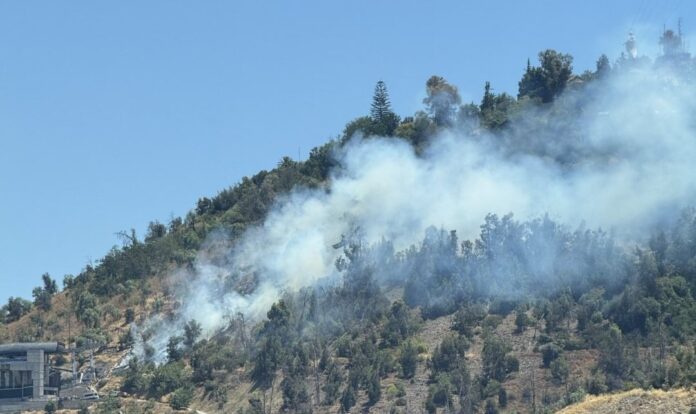 Un incendio forestal está afectando la ladera sur del Parque Metropolitano en el cerro San Cristóbal, en la zona de Bellavista, comuna de Providencia.