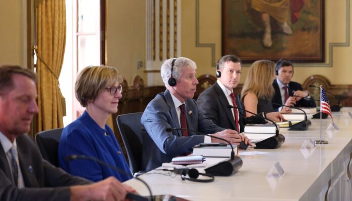 El secretario, que se mostró honrado de estar en la capital venezolana, afirmó que «esto no son solo palabras». «Nuestro Gobierno en Washington D.C. trabaja arduamente para emitir licencias que permitan a las empresas existentes y nuevas ingresar al mercado venezolano, así como también a las compañías estatales para adquirir productos, invertir en el aumento de producción de petróleo, crear nuevos empleos y mejorar los ingresos por exportación», agregó.